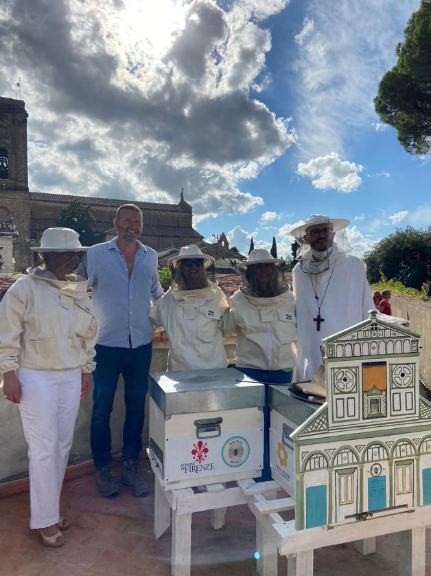 In 2021, we initiated and created URBAN BEE KEEPING in Florence, a city rich in gardens and its River Arno. We have received the official seal of approval (patrioncino) for this project from the City of Florence. Our ongoing end-goal is to devise a programme to create private urban apiaries (Bee Hotels) and BEE-hoods and to help increase the overall bee population both in urban areas and and beyond. in time this will lead to greater biodiversity, healthier air and increased bee populations.
