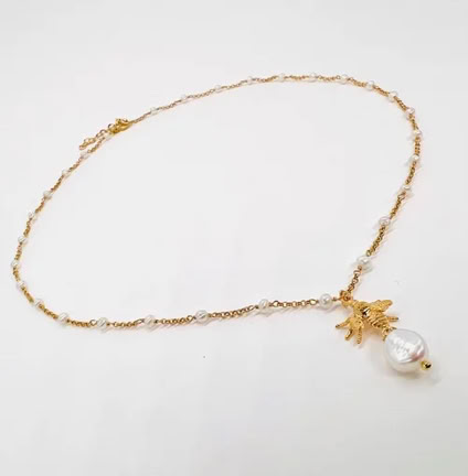 BEE T NECKLACE WITH PEARL PENDANT
