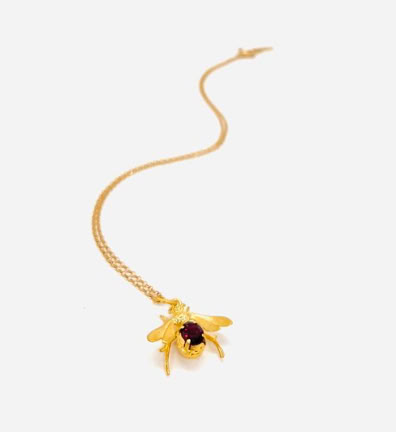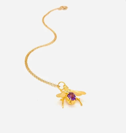 BEE-DAZZLED GOLD VERMEIL NECKLACE WITH PURPLE AMETHYST GEMSTONE