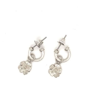 SILVER HOOP EARRINGS WITH FORGET-ME-NOT FLOWER