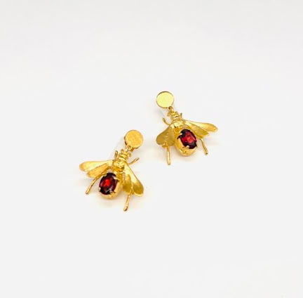BEE DAZZLED EARRINGS WITH PRECIOUS RED GARNET GEMSTONE