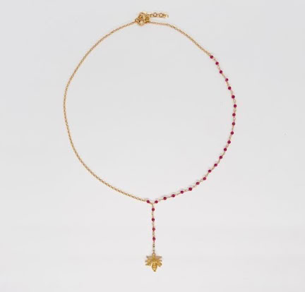 BEE-DAZZLED GOLD VERMIEL NECKLACE WITH RED GARNET GEMSTONE