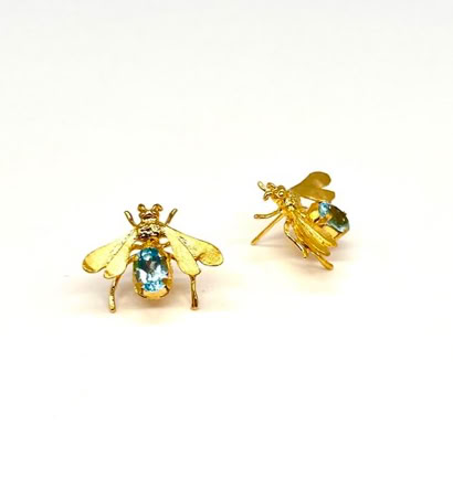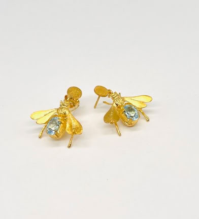 BEE DAZZLED EARRINGS WITH LIGHT BLUE TOPAZ GEMSTONE