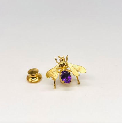BEE JEWELLED PIN WITH PURPLE AMETHYST GEMSTONE
