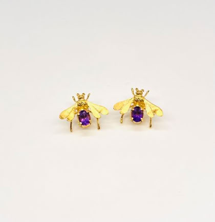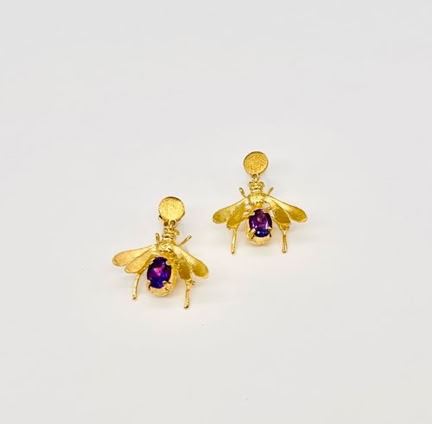 BEE DAZZLED EARRINGS WITH PRECIOUS AMETHYST GEMSTONE