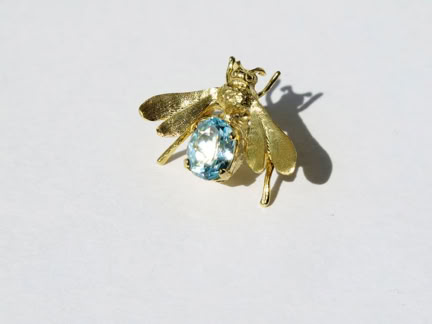 BEE JEWELLED PIN WITH PRECIOUS BLUE TOPAZ GEMSTONE